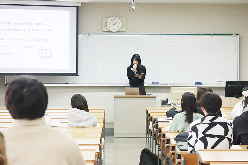 1月26日(月)、27日(火)の2日間にわたり国際総合学科の卒業研究発表会が行われました。 12の研究室の分かれて2年間の集大成である卒業論文の概要を発表しました。 学生一人ひとりが積み上げてきた経験や知識が詰まった発表となり、学んだ外国語を取り入れた発表や日本と海外の文化との違いの検証、歴史に関する研究など、多種多様な研究発表となりました。