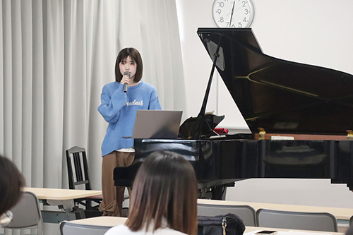 発表者各自が設定したテーマに基づいて、楽曲分析をした研究の成果を発表しました。ピアノを使用するなど、学生それぞれが2年間で学んだ知識を活かした発表となりました。