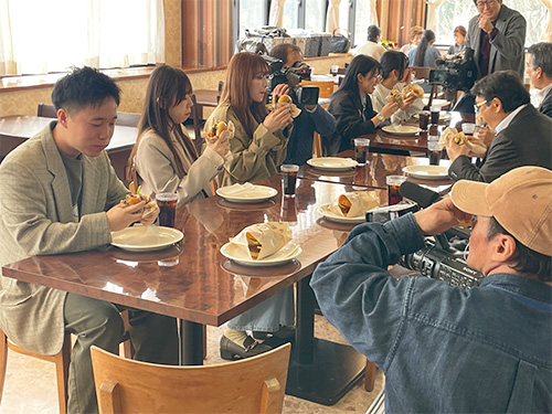この日(3月17日)の記者発表には、TOSテレビ大分やOBS大分放送、OAB大分朝日放送などメディア各社が集まり、新商品のお披露目とキャラクターデザイン、プロモーション動画の披露が行われました。(各社の夕方18時台のニュースで放送されました)