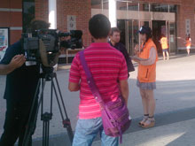 学生防犯ボランティア「おおいたパトロックス」で活動する本学 国際総合学科2年の徳冨智美さんが、OBS大分放送「おおいた捕物帳」の取材を受けました。