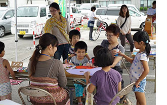 9月13日、竹田町商店街の「楽市楽座」アートスネイクプロジェクト※に参加し、集まってくれた子どもたちとアートスネイクを作成しました。