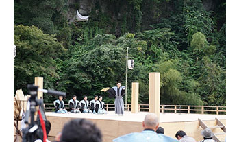 翌日14日には、竹田城下町で開催された「竹田アートカルチャー」を取材しました。竹田のまちなかには、竹田市の空き家再生・移住促進事業などによって若いアーティストが集まりつつあります。竹田中心市街地で行われた「竹田アートカルチャー2014」には、竹田に移住したアーティストなどが参加しています。夜行われた竹田薪能では稲葉川につくられた特設ステージにて薪の灯りで能や狂言などが演じられました。
