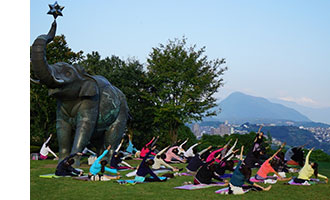 10月4日、大分市の森林セラピー事業で行われた「森のヨガ」に参加しました。この「森のヨガ」は、大分市美術館広場などで開催されたヨガ教室で、森林セラピーを卒業研究のテーマとする学生たちがお手伝いをさせていただきました。