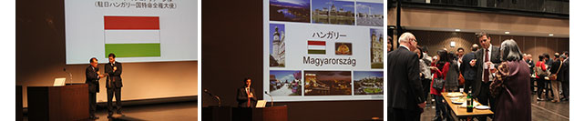 その後、大使が登場。ハンガリーの地理や歴史、自然をはじめ、ご自身の生い立ちやこれまで歩まれてきた道など、日本語が堪能な大使は通訳を介さず、時にユーモアを交えながら熱く語ってくれました。この中で、大分のように、ハンガリーにはさまざまな温泉があること、ワインの産地が22ヶ所もあり、貴腐ワインは特に有名であることなど、ハンガリーについての魅力が紹介されました。