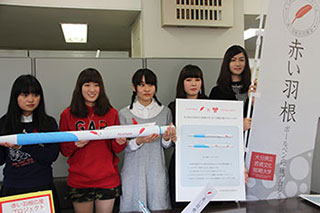 「赤い羽根応援プロジェクト」は、主要メンバーを中心に、ボランティアで多数の学生が参加しています。このようなボランティア活動は、本学では“サービスラーニング”という授業でも取り上げています。社会貢献をすることが単位に結びつくというのは、新しい取り組みでもあり、自主性・論理性・協調性のある“社会人力”の育成に役立っています。