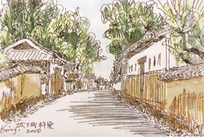 ▲中山学長のイラスト「城下町杵築」