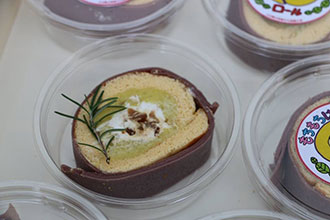 本学学生は、大分産のサツマイモ紅はるか、大分市産のクチナシの実などを使った「はるかちゃんロール」で参加しました。参加8チームで、味・香り・触感・プレゼンなど森のスイーツにふさわしいか審査され、投票より、見事準グランプリに選ばれました!