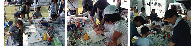 3年ぶりに晴天の中行われた直入地区の地域振興祭。幼稚園、小学校、中学校のそれぞれのステージ発表や出し物が行われる中、竹田キャンパスとしては、エコバック作りのワークショップと、かいゆきによるライブペイントの参加をしました。