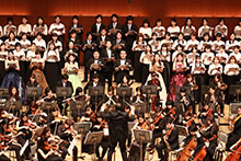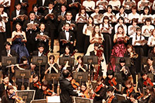 旧約聖書を基に書き上げた壮大なオラトリオ「天地創造」(ハイドン作曲)で幕を開け、合唱と共にソプラノ、テノール、バスの声楽ソロが活躍しました。続いて、混声合唱のためのカンタータ「土の歌」(佐藤眞作曲)。オーケストラ伴奏による全曲演奏は演奏機会が少ないだけに、原詩に込められた原子爆弾の悲惨さ、平和への希求、そして自然への感謝が見事に描きあげられました。特に、最終楽章の「大地讃頌」は有名で、会場からも感動の大きな拍手をいただきました。