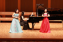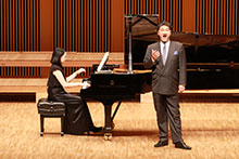 最後に、平成27年1月9日(金)・10日(土)にiichiko総合文化センター iichikoグランシアタで上演されるオペラ『フィガロの結婚』に出演する上田雅美さん(本学非常勤講師)と小村朋代さんのソプラノ2名で、『手紙の二重唱』を歌い上げました。ピアノ伴奏は、小松あずみさんが務めました。