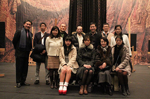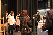そんな中、2日目舞台の直前となる10日11時より、「フィガロの結婚」SS席のチケットを購入していただいた方の特典であった「バックステージツアー」を開催しました。当日は10名の方がツアーに参加、演出を担当した飯塚励生氏と本学音楽科 行天祥晃准教授がナビゲートを務めました。