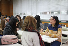 この日は、編入学を希望する学生を対象としたもので、4年制大学3年次編入に合格した2年生がアドバイザーとして出席、参加した1年生に試験までにやってきた準備の内容、勉強方法、使用した参考書などさまざまな分野に関して自らの経験を話しました。