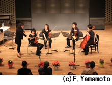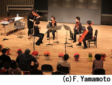 「第16回別府アルゲリッチ音楽祭」の「公開室内楽 マスタークラス」が5月7日、別府市のビーコンプラザ・国際会議室であり、本学学生・卒業生が弦楽四重奏で受講しました。講師は、国内外で活躍するヴィオラの川本嘉子さんが努めました。同音楽祭のテーマの一つが“育む”で、アルゲリッチが提唱する若手音楽家の才能を伸ばすためのプログラムです。
