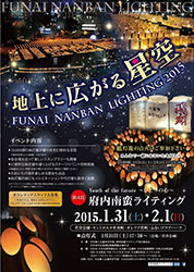 後期最後の活動ということと、光の幻想的なものを見たかったから参加した。プラスチックコップを切り、黒いボードに 2015 FUNAI NANBAN LIGHTING という文字になるように画ビョウで貼り付けた。紙灯籠の中にキャンドルを入れた。プラスチックコップの上に紙を巻きつけるのだが、紙を巻きつけるのと、夢を書いてもらう呼びかけをした。