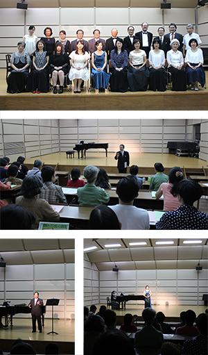 20代から70代までの受講生の方々が「熊祭り(イヨマンテ)の夜」、「枳殻の花」、「Ave Maria」、「小さな空」、「落葉松」、「飛騨高原の早春」、「最後の歌」、「さくら横ちょう」、「野ばら」などのほか、オペラから「ルイーズ」より「その日から」、「トスカ」より「歌に生き、恋いに生き」、「ジャンニ・スキッキ」より「わたしのお父様」、「リナルド」より「泣かさせたまえ」、「ボェーム」より「冷たき手を」、「トスカ」より「星は輝きぬ」など、講座で磨いた歌声を披露しました。観客は「ブラボー」の掛け声と拍手を受講生の方々に贈りました。