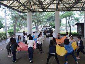 研修では、ABC野外教育センターのプログラムを体験しました。2ゼミ合同で課題を解決していく活動では、まず少人数からコミュニケーションをはじめ、最後には大人数でも協力できることを実感していました。また、ゼミごとの活動では、一方のゼミの活動中、他方のゼミが観察者になりました。活動終了後に、観察者が活動中のリーダーシップやコミュニケーションについて気づいたことをフィードバックしアドバイスしていきました。自分では気づかなかった自分の特徴を改めて考える機会になりました。