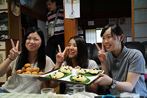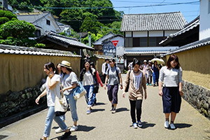 7月18・19日、情報コミュニケーション学科学生1・2年18人が参加して、たけた食育ツーリズム研修に行ってきました。18日は、竹田城下町を散策、その後、元岡本屋で竹田農家民泊グループ「きちょくれたけた」の皆さんと顔合わせを行いました。各農家に別れて、農家体験を楽しみました。翌日は朝5時に卯野農場に集合、とうきび(トウモロコシ)畑に向かいました。夜明け前のメロンより糖度の高いスイートコーンを畑でいただき、フィリッピンの研修生の方々と収穫体験を行いました。10時から道の駅すごうで行われた「とうきびフェスタ」をお手伝いを行い、菅生のとうきび「すごあまコ~ン」をみんなに知ってもらう活動を行いました。