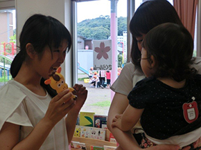 6月6日、20日、7月18日、8月1日の4日間にわたり、大分市子育て交流センター主催の「お父さん応援教室」の保育スタッフとしてお手伝いさせていただきました。学生にとっては、サービスラーニングの一環としての活動です。子育て交流センターでは、お父さん方に対する子育て支援が行われており、お父さんが会に参加されている間に、学生たちは、保育スタッフとして保育室でお子さんたちと一緒に過ごしました。