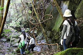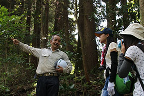 本学はこの事業の開始当時から大分市産業振興課森林セラピー班の方に地域社会特講で講演をお願いし、セラピーコースづくりやイベントの実施、情報発信などに協力してきました。本年度も市民から募集した新しいセラピーコースづくりに参加しています。7月31日には地域特講で講演をお願いした野津原田ノ口地区のコースの調査に出かけました。厳しい過疎化が進行しつつありますが地域ぐるみで森林の整備を行い、新たな森林セラピーコースづくりに取り組んでいます。ブルーベリーの収穫やイタヤカエデからメープルシロップづくり、日本ミツバチのハチミツづくりなど体験型のメニューを構想しています。8月7日は大分市上判田地区の本宮山に。本宮山を守る会の方々と森林セラピー本宮山コース調査にいきました。会のみなさんの努力でコースがきちんと整備されています。大分市内と思えないほど自然豊かです。藤で有名な豊後一宮西寒多神社の本宮がむかしあったところです。武内宿祢が応神天皇の名で建立したと伝えられます。その後、大友氏が山麓に移したのがいまの西寒多神社です。両コースとも大分市内とは思えないほど豊かな自然が残っています。森林セラピーなどの取組によって、地域の方々と森林の荒廃を食い止め過疎化に歯止めをかけるお手伝いができたらと思います。