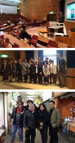 参加国は、マレーシアが一番多く、ついで韓国、タイ、インド、日本の大学に勤務するアメリカ国籍の研究者も2名、来学されました。日本人研究者は1名だけで、コミュニケーションは全て英語でおこないました。