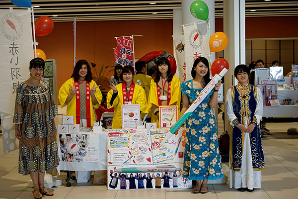 10月31日(土)・11月1日(日)、大分県文具・事務機商組合連合会が行う「文具フェスタ」にサービスラーニングで参加しました。赤い羽根ボールペンのコーナーを開設したほか、スタンプづくり・布テープバッグづくり・折り紙工房・エポンテスタンプなどの体験工作コーナーをお手伝い、体験参加者のみなさんに、募金をお願いしました。おおいたワールドフェスタ・フェアトレードコーナー参加の学生さんにも協力していただきました。