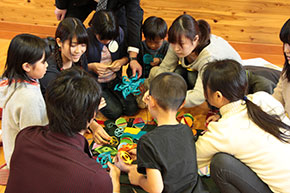 「地域ふれあいアート講座」は、本学の地域貢献活動の一貫として、2005年から毎年、県内各地の小学校を中心に取り組んでいるもので、子どもたちに創作の喜びや楽しさを味わってもらい、造形美術に対する興味や子どもたちの持つ感性を引き出すことを目的に行っています。