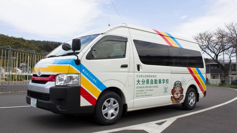 本学専攻科造形専攻2年生(2016年3月卒業)の池部栞奈さんが、大分県交通安全協会のキャラクターデザインを制作し、そのキャラクターが、大分県自動車学校の送迎バスの側面にデザインされました。