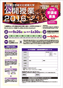 ※「公開授業」は、大学の講義を県民のみなさまに公開して、学生と机をならべて学んでいただくという制度です。