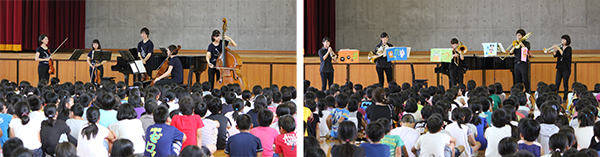 オペラで参加した学生は、「いつも演奏しているホールではなく体育館ということで声が響かずなかなか難しいところもありましたが、児童も喜んでくれて、とても楽しかったです。」と話し、学生にとってもいい経験になったようです。