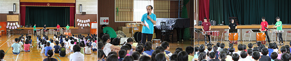 9月27日(火)九重町の東飯田小学校にて、本学の音楽科 松倉利之教授と打楽器専攻の学生有志によるパーカッションアウトリーチコンサートを開催しました。