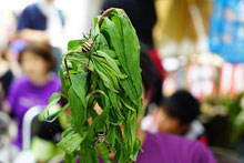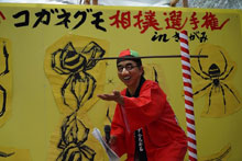 7月13日、大分市木佐上コミュニティーの「木佐上こがねくも相撲選手権」に参加しました。丹精込めて育てたこがねくもを棒の上で戦わせる大会です。下に落ちたり、戦意を失った方が負け。子どもから大人まで夢中でくもたちのバトルを応援していました。
