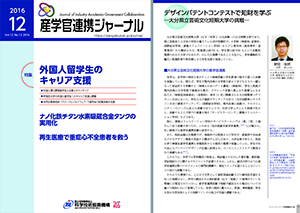 また、デザインパテントコンテストへの呼びかけや、知的財産面での指導を担当した、弁理士でもある情報コミュニケーション学科の野田佳邦 講師が、これまでの取り組みを執筆した記事が「産学官連携ジャーナル」の2016年12月号に掲載されました。併せて、ご覧ください。画像をクリックするとPDFで見ることができます。また、産学官連携ジャーナルHPでもご覧いただけます。