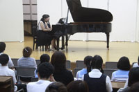 「学科紹介」「ミニコンサート」「施設見学」「入試相談」などを行いました。「ミニコンサート」では、学生による ピアノ演奏、 打楽器演奏、オペラ・ハイライトなどを披露しました。素晴らしい演奏と華やかな舞台に、会場を埋め尽くした生徒さんたちは感動の渦に包まれていました。