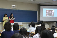 「学科紹介」「学科入試説明」「在学生によるキャンパスライフ紹介」「ネイティブ教員と楽しく学ぶ語学体験」「入試・学生生活相談」などを行いました。「ネイティブ教員と楽しく学ぶ語学体験」では、英語・中国語・韓国語などのミニ授業を実施、単語や簡単な会話などを学びました。また「在学生によるキャンパスライフ紹介」では、学生たちが海外語学実習の様子を紹介、授業やボランティア、観光の様子をスライドを使って伝えました。