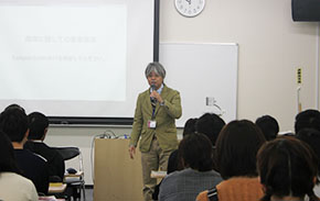 教務学生部長の洲(すが)部長は「専門の勉強だけでなく、一般的な教養も身に着けてほしい。責任を持ち、ルールを守って楽しい学生生活を送っていただきたい。」と新入生への期待を述べました。