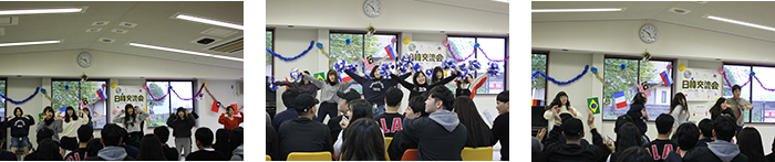 まず本学がダンスサークルによるダンスを披露。K-POPアーティストの曲では大いに盛り上がり、南海大学の学生と一緒に掛け声や手拍子でステージを盛り上げました。