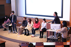 12月27日(水)は大講義室にて、進路支援室 杉山課長の司会進行により、内定が決まった2年生が就活についての疑問や相談に一問一答形式により行われました。