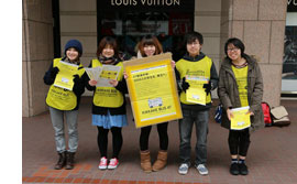 東日本震災をいつまでも風化させない「きっかけ」。被災地の人たちをもっと元気にする「きっかけ」。ボランティアをしたい学生たちを、東北に連れて行く「きっかけ」。2月8日と9日、 本学学生たちが2000人の学生を東北に連れて行くための募金活動に立ち上がりました。「きっかけバス」HPはこちらをクリック。