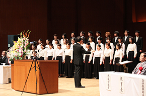 また本式典にご参列下さいましたご家族、関係者の方々には、喜びは如何ばかりかと存じます。心からお祝いを申し上げると同時に、私どもの教育に後援会を通して様々なご助言やご支援をいただくようお願い申し上げる次第です。中には遠路はるばるこの地においでになられた方もいらっしゃると思いますが、ご子弟はこれからこの大分の地で勉学に励むことになります。