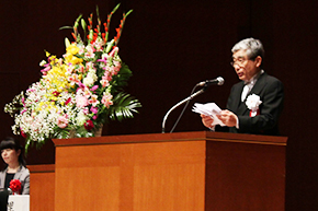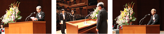 さて、新入生の皆さんは、待ちに待った今日の入学式を迎えられ、キャンパス生活への期待と希望に胸を膨らませておられると思います。これからはその期待に違わず、新鮮な気分の中にも、緊張感のある、ワクワクするような毎日になることを約束します。ご家族の方々には、今までの来し方を感慨深く思い起こしていらっしゃることと思いますが、お子さまが大学に入学されると、今までと比較にならないほど独立して自分の道を歩き始めることになります。これからは是非そのことをご理解いただき、温かく見守って下さるようにお願い致します。
