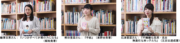 2位は藤澤百恵さんが紹介した『いつかすべてが君の力になる』(梶裕貴著)、3位には國田愛実さんが紹介した『何者』(朝井リョウ著)と、永田雛子さん紹介の『シューカツ!』(石田衣良著)の2冊が選ばれました。