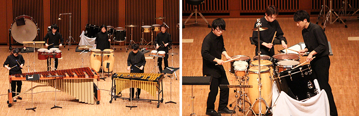 第1部ではマリンバやビブラフォンが奏でる美しい音色や、身体中に響く太鼓の迫力に観客たちは引き込まれていきました。第2部では客席からボディパーカッションを奏でながら登場する演出も行われ、アンコール曲"情熱大陸"では観客も手拍子を叩き、会場全体が一体となり閉幕しました。たくさんの方にお越しいただき、ありがとうございました!