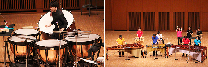 パーカッショングループミレニアムは、1999年に設立され、本学音楽科・専攻科音楽専攻の打楽器専攻の学生が企画・運営・演奏まで一丸となって取り組んでいる打楽器アンサンブルグループです。設立時から第8回までは福田隆先生(元・本学教授:現・国立音楽大学教授)が、第9回からは松倉利之先生(本学名誉教授:現・エリザベト音楽大学講師)が、昨年の第19回目からは木野聖子非常勤講師が指導を行っています。