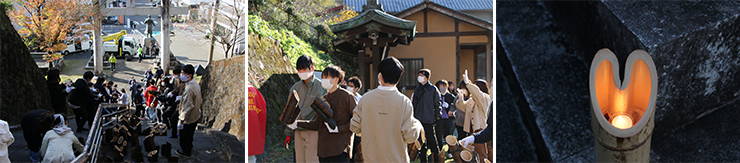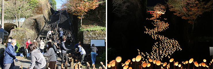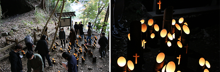 また、隠れキリシタン洞窟礼拝堂では、これまでの大分県立芸術文化短期大学の長年にわたる交流実績を踏まえ、芸文短大の学生のために竹灯籠の点火が特別に許可され、これらの点火作業などを支援しました。