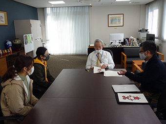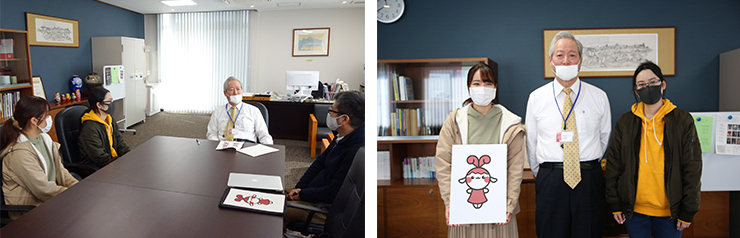 アートマネジメントプログラム企画「マスコットキャラクターコンテスト」でこのほど審査・投票により本学マスコットキャラクターが決定し、2月9日(火)に学長報告を行いました。