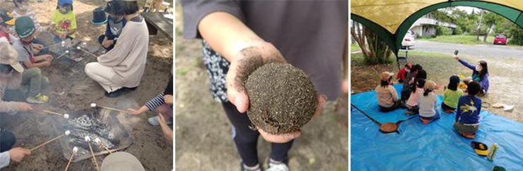 この活動は、小学1~3年生を対象とした合計8回の日帰りデイキャンププログラムで、第1回目の活動では、ハンモック&トランポリンブランコ遊び、海の環境教育プログラム&ビーチ清掃、泥団子作りクラフト、焚き火おやつ作りを行いました。