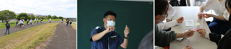 担当教員の綾部准教授から、乙津川の歴史、おおいた遺産になっている「高田輪中」、別府湾の埋め立て開発と緩衝緑地の役割などについて説明があり、乙津川河口から上流に向けて清掃活動を行いました。