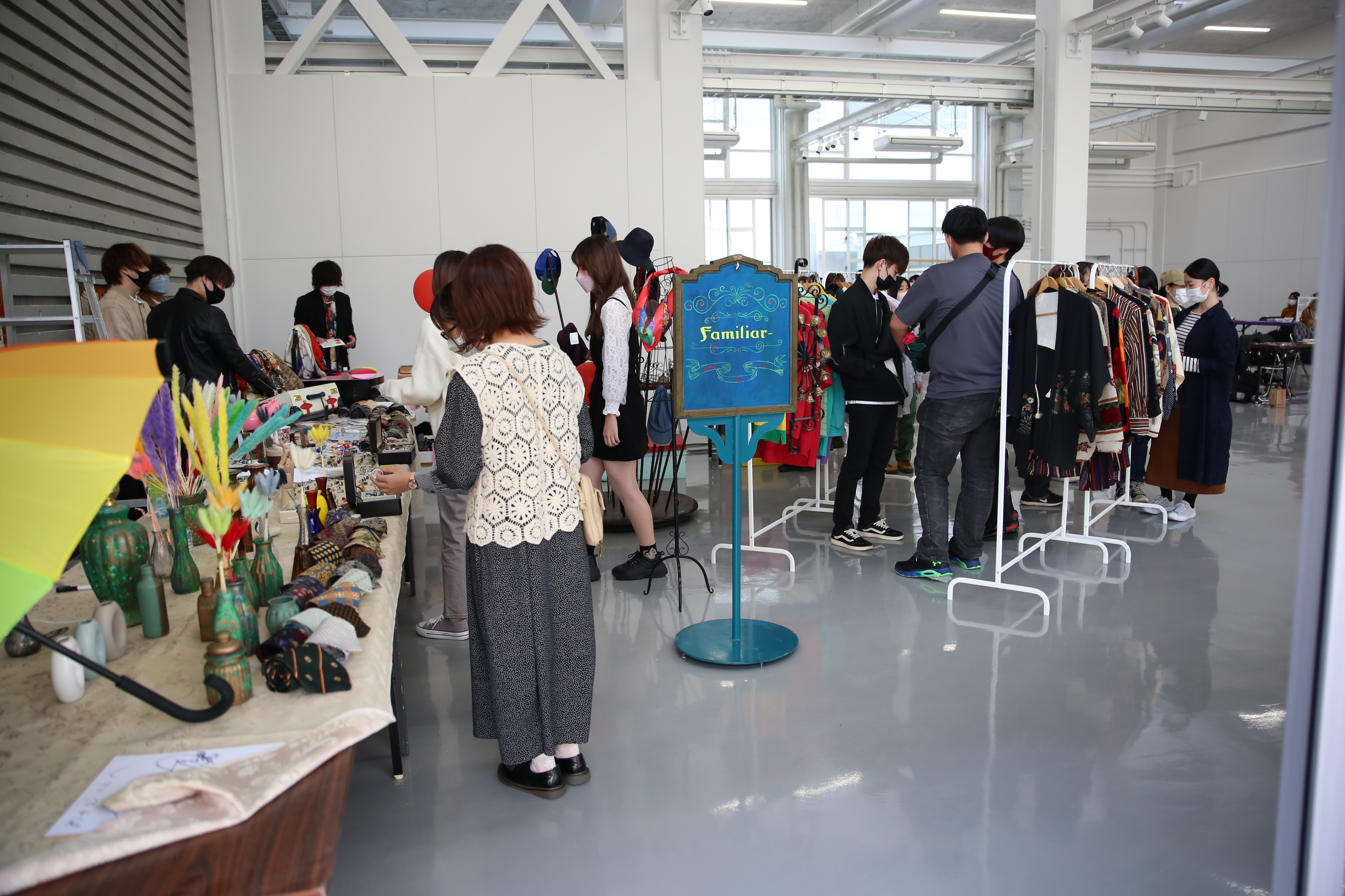 別会場では、美術・デザインの学生による制作物の販売や、60周年記念グッズの販売、フリーマーケット、茶会や弾き語りライブなど個性豊かな企画で参加学生も楽しんでいました。