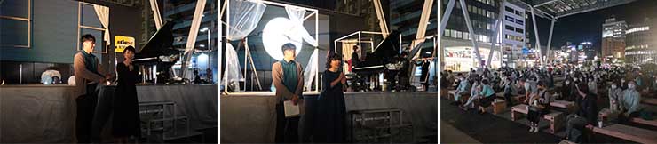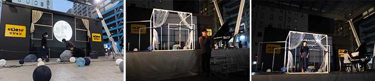 当日は国際総合学科学生の司会のもと、美術科学生が制作した3つの部屋がステージに表れ、音楽科卒業生や演奏員によるベートーヴェン作曲「月光」やドヴォルザーク作曲「月に寄せる歌」など、月にまつわる曲を演奏しました。