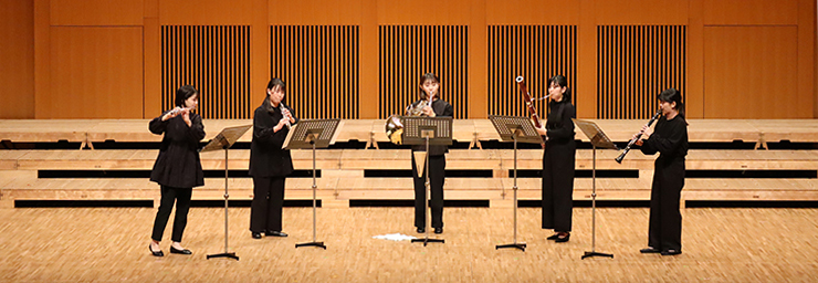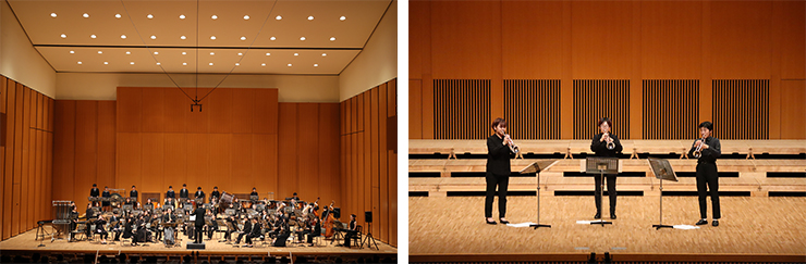 第1部でトランペット三重奏、フルート・オーボエ・ホルン・ファゴット・クラリネットによる木管五重奏を披露。